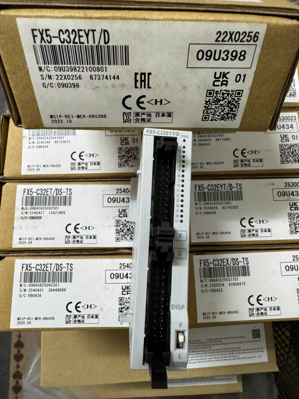 Mô đun PLC Mitsubishi FX5: FX5-40SSC-S, FX5-80SSC-S, FX5-232-BD, FX5-485-BD, FX5-232ADP, FX5-485ADP, FX5-16EX/ES, FX5-16EYR/ES, FX5-16EYT/ES, FX5-16EYT/ESS, FX5-1PSU-5V, FX5-CNV-BUS, FX5-8EX/ES, FX5-8EYR/ES, FX5-8EYT/ES, FX5-8EYT/ESS, FX5-422-BD-GOT, FX5-32ER/ES, FX5-32ET/ES, FX5-32ET/ESS, FX5-CNV-IFC, FX5-CNV-BUSC, FX5-C32EX/D, FX5-C32EX/DS, FX5-C32EYT/D, FX5-C32EYT/DSS, FX5-C32ET/D, FX5-C32ET/DSS, FX5-4AD-ADP, FX5-4DA-ADP, FX5-32ER/DS, FX5-32ET/DS, FX5-32ET/DSS, FX5-CCLIEF, FX5-16ET/ES-H, FX5-16ET/ESS-H, FX5-C16EX/D, FX5-C16EX/DS, FX5-C16EYT/D, FX5-C16EYT/DSS, FX5-C1PS-5V, FX5-CNV-IF, FX5-CNV-BC, FX5-8AD, FX5-4LC, FX5-20PG-P, FX5-CCL-MS, FX5-ASL-M, FX5-4AD, FX5-4DA, FX5-20PG-D, FX5-16ER/ES, FX5-16ET/ES, FX5-16ET/ESS, FX5-4AD-PT-ADP, FX5-4AD-TC-ADP, FX5-C32EX/DS-TS, FX5-C32EYT/D-TS, FX5-C32EYT/DSS-TS, FX5-C32ET/DS-TS, FX5-C32ET/DSS-TS, FX5-C16EYR/D-TS, FX5-DP-M, FX5-ENET, FX5-ENET/IP, FX5-SF-MU4T5, FX5-SF-8DI4, FX5-30EC, FX5-65EC