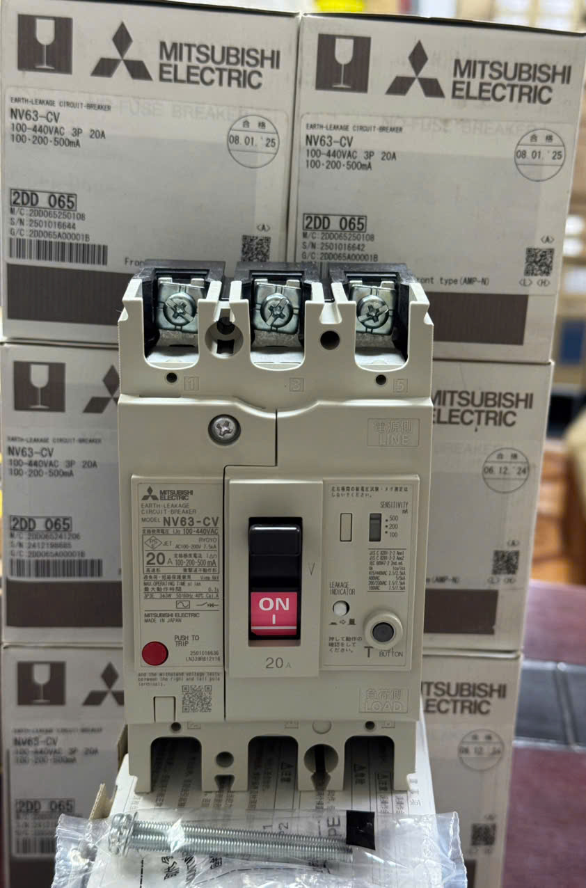 Aptomat Mitsubishi NV63-CV 3P 20A 100–440V 1.2–500mA là dòng thiết bị bảo vệ cao cấp thuộc seri NV63-CV của Mitsubishi Electric, nổi tiếng với độ bền và khả năng bảo vệ vượt trội. Sản phẩm được thiết kế để bảo vệ mạch điện ba pha khỏi quá tải, ngắn mạch và rò rỉ dòng điện, đảm bảo an toàn tuyệt đối cho hệ thống điện trong công nghiệp và dân dụng.